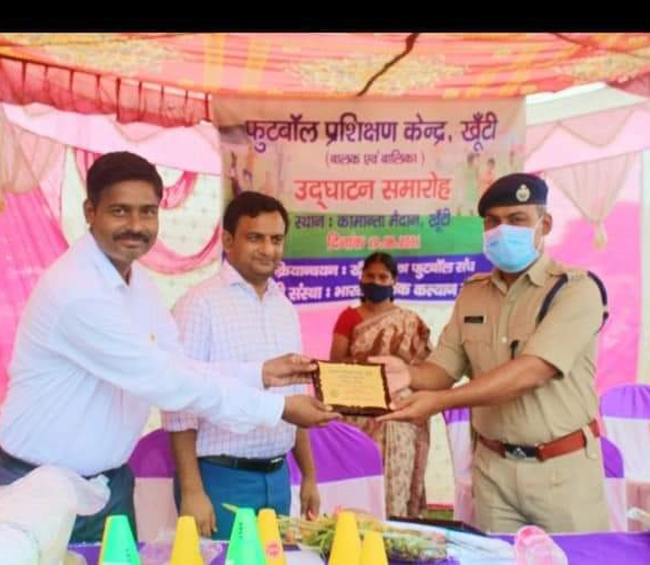 खूंटी : आजादी के अमृत महोत्सव 75 वर्ष पूरे होने के अवसर पर गुरुवार को कमंता खेल मैदान में जिला के सभी 6 प्रखंडों में कुल आठ फुटबॉल प्रशिक्षण केंद्र का उद्घाटन जिला के उपायुक्त शशि रंजन ने किया। कार्यक्रम के मुख्य अतिथि के रूप में शशि रंजन उपायुक्त खूंटी, विशिष्ट अतिथि के रूप में पुलिस अधीक्षक आशुतोष शेखर एवं सैयद रियाज अहमद,अनुमंडल पदाधिकारी खूंटी ने संयुक्त रुप से सभी प्रखंड के प्रशिक्षण केंद्रों का उद्घाटन किए ।खूंटी जिला फुटबॉल संघ एवं भारत लोक कल्याण संस्थान के सहयोग से जिला के सभी 6 प्रखंडों खूंटी, रनिया, कर्रा, तोरपा, मुरहू एवं अड़की मे