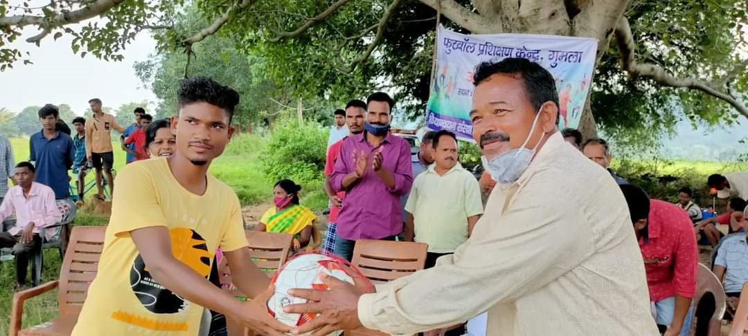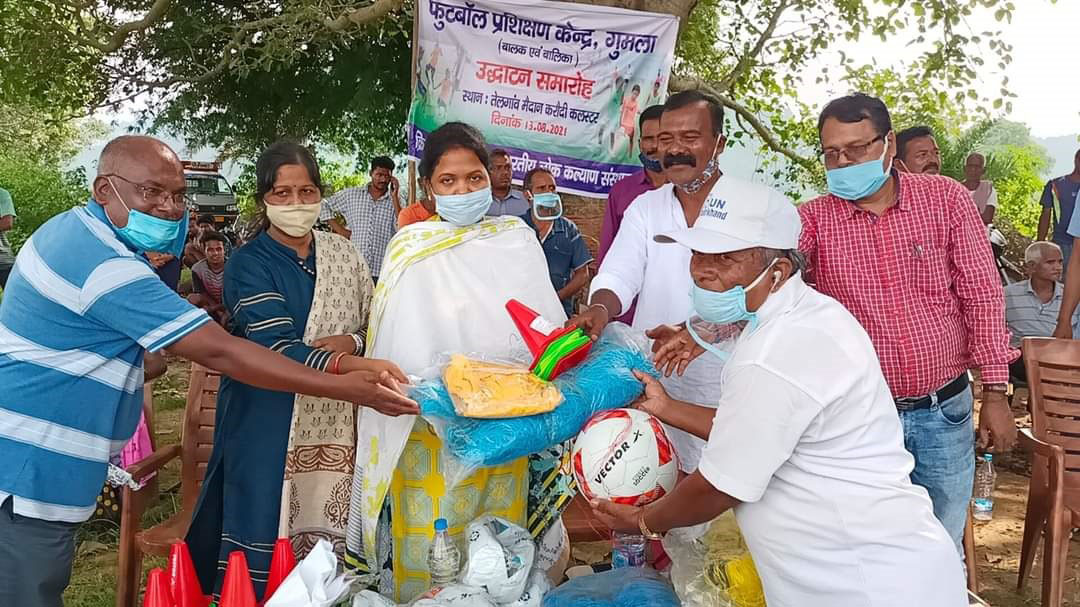 आज के उद्घाटन समारोह में प्रखंड विकास पदाधिकारी सुश्री सुकेशिनी केरकेट्टा ने चारों प्रशिक्षकों के बीच में खेल सामग्री फुटबॉल नेट, चार फुटबॉल ,कौन और कोच के लिए टीशर्ट का वितरण किया ।
